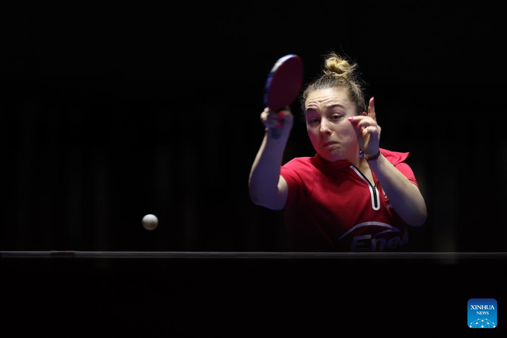 Natalia Bajor of Poland competes against Zhu Chengzhu of China's Hong Kong during the women's team round of 16 match at the ITTF World Team Table Tennis Championships Finals Busan 2024 in Busan, South Korea, Feb. 21, 2024. (Xinhua/Zhang Tao)