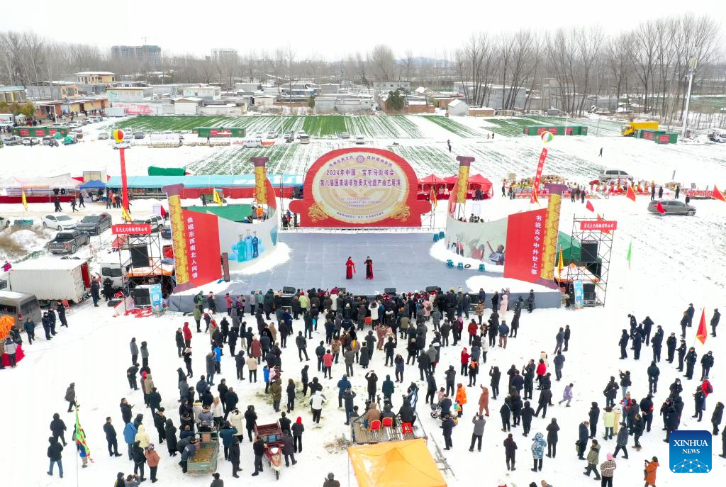 People attend the Quyi fair in Majie Village of Baofeng County, central China's Henan Province, Feb. 22, 2024. (Xinhua/Hao Yuan)