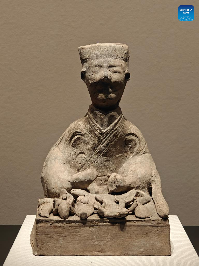 This undated photo shows a chef figurine dating back to the Eastern Han and Three Kingdoms periods unearthed from a tomb in southwest China's Chongqing.(Sichuan Museum/Handout via Xinhua)
