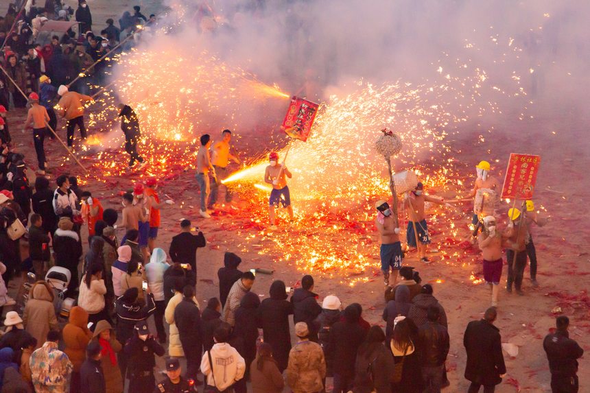 A time-honored tradition of the local Tujia ethnic group, the celebration takes place every year during the Lantern Festival. During the event, dragon dance teams brave the streets while spectators hurl firecrackers and fireworks at them. This exhilarating event creates a lively spectacle, earning the event its nickname, "Oriental Carnival." In 2021, this unique tradition was added to the expanded list of state-level intangible cultural heritage items.
