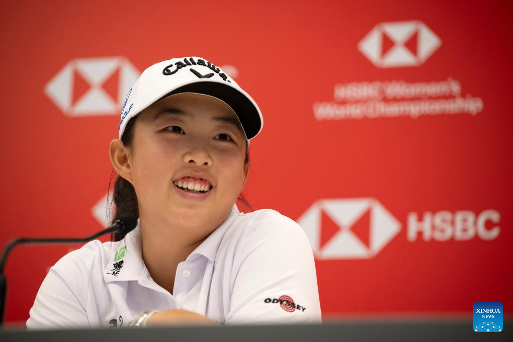 Yin Ruoning of China attends the HSBC Women's World Championship pre-tournament press conference held at the Singapore's Sentosa Golf Club on Feb. 27, 2024. (Photo by Then Chih Wey/Xinhua)