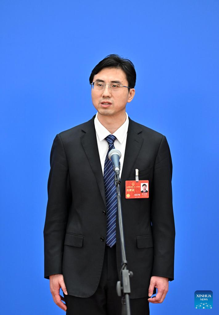 Sun Dongming is interviewed ahead of the second plenary meeting of the first session of the 14th National People's Congress in Beijing, capital of China, March 7, 2023. (Xinhua/Li Xin)
