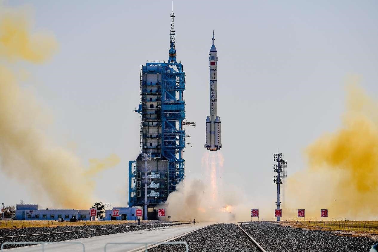 The Shenzhou-17 manned spaceship, atop a Long March-2F carrier rocket, blasts off from the Jiuquan Satellite Launch Center in northwest China, Oct. 26, 2023. (People's Daily Online/Wang Xiaobo)