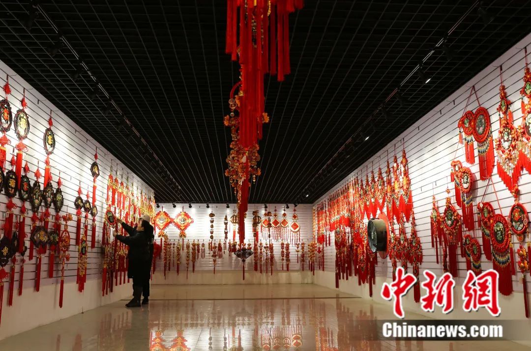 Photo shows Chinese knots on display at a Chinese knot farmers' cooperative in Honghua township, Tancheng county, east China's Shandong Province. (Photo/Li Jieyi)