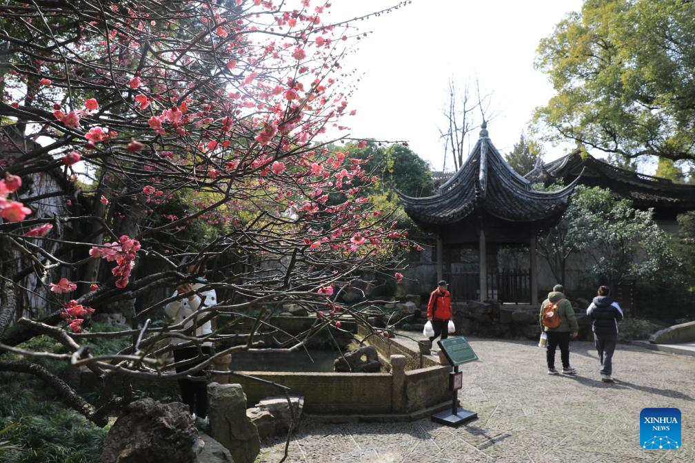 Tourists visit the Jichang Garden in early spring in Wuxi, east China's Jiangsu Province, March 1, 2024. The Jichang Garden in Wuxi is a classical Chinese garden built in the 16th century, best known for its elegant design and tranquil atmosphere. (Xinhua/Mao Jun)