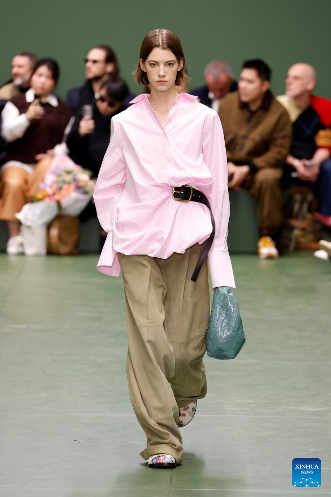 A model presents a creation from the Fall-Winter 2024/2025 ready-to-wear collections by Loewe during the Paris Fashion Week in Paris, France, on March 1, 2024. (MeetEurope/Handout via Xinhua)