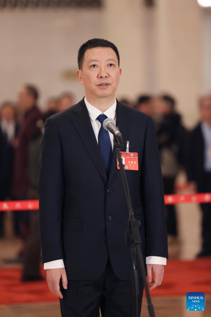 Ye Cong, a member of the 14th National Committee of the Chinese People's Political Consultative Conference (CPPCC), is interviewed ahead of the opening of the second session of the 14th CPPCC National Committee at the Great Hall of the People in Beijing, capital of China, March 4, 2024. (Xinhua/Xing Guangli)