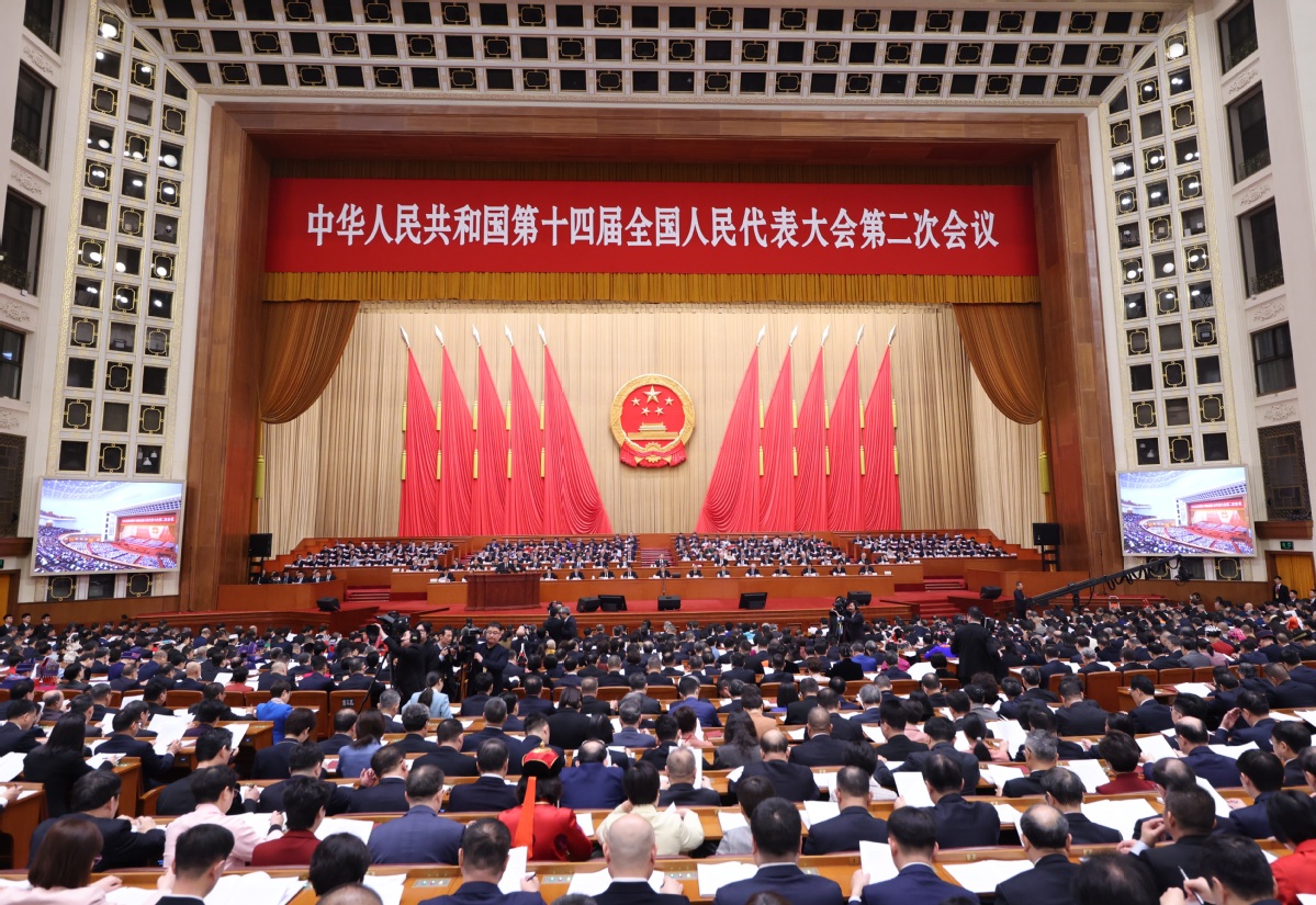 The second session of the 14th National People's Congress opens at the Great Hall of the People in Beijing on Tuesday. FENG YONGBIN / CHINA DAILY