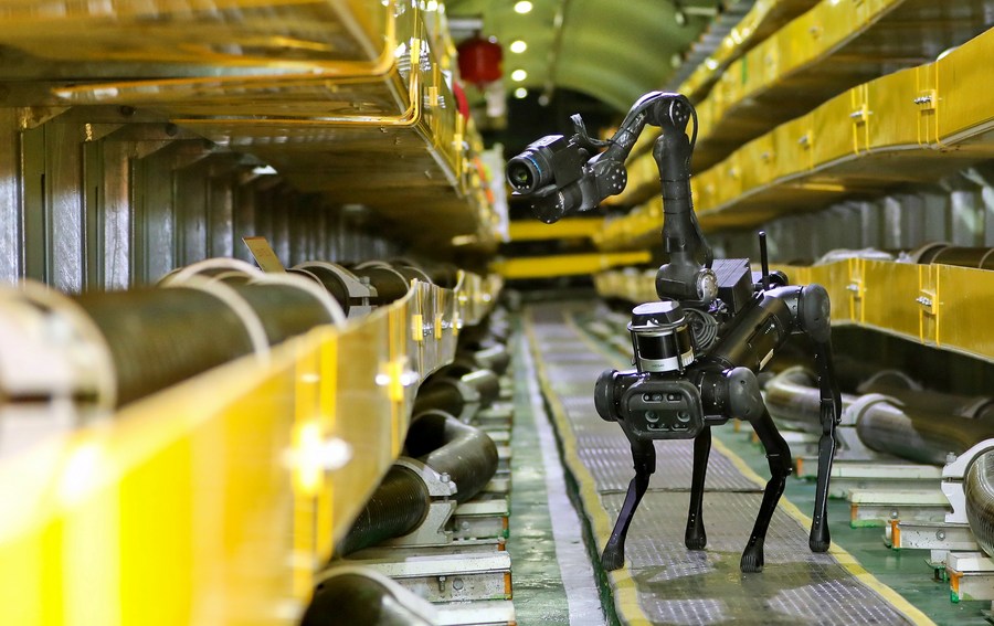 A robot is used to check the operation of underground cables in a tunnel in Fengtai district of Beijing, Dec 23, 2023. [Photo/Xinhua]