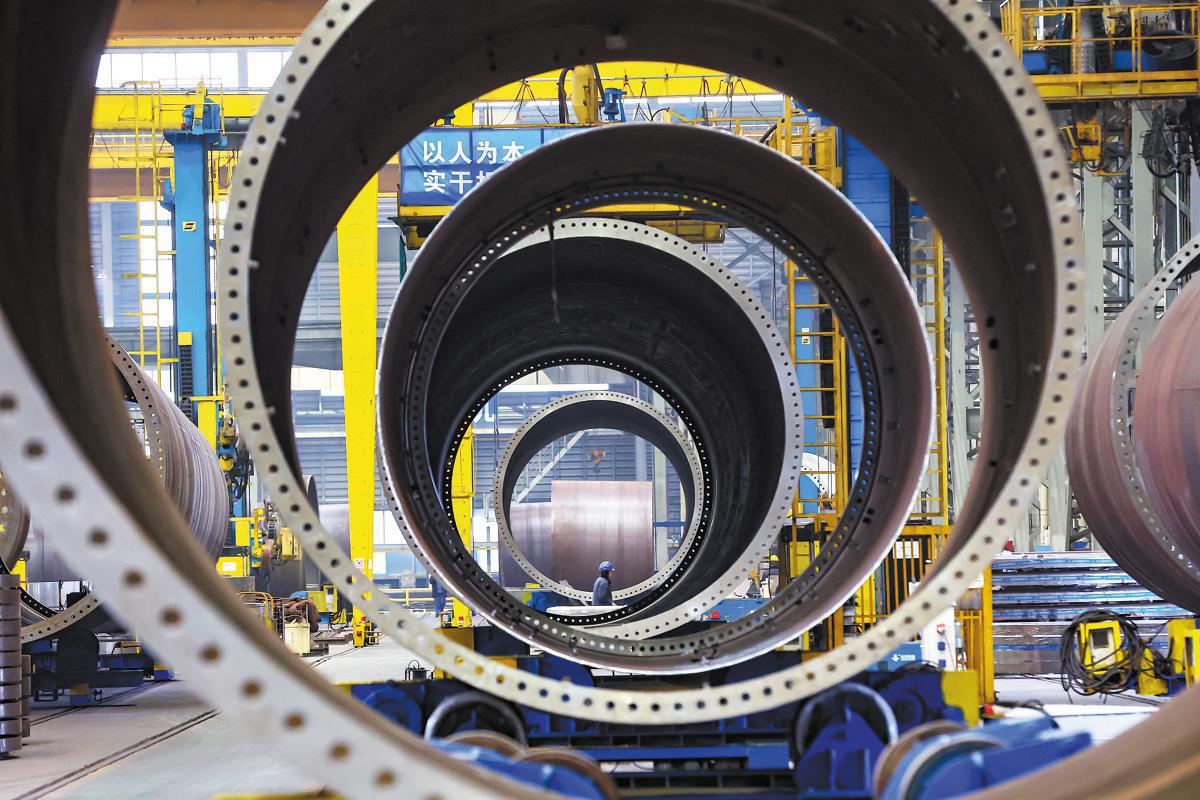 An employee of an engineering equipment manufacturer in Nanjing, Jiangsu province, works at the company's production line, Feb 29, 2024. YANG BO / CHINA NEWS SERVICE