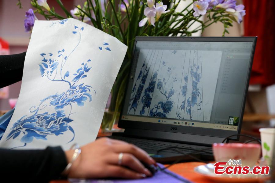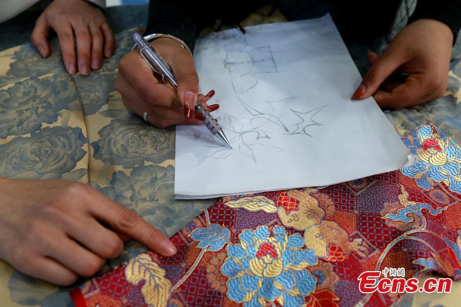 A designer draws flower patterns for horse-face skirts at a garment factory in Caoxian County, east China's Shandong Province, March 4, 2024. (Photo: China News Service/Liang Ben)
