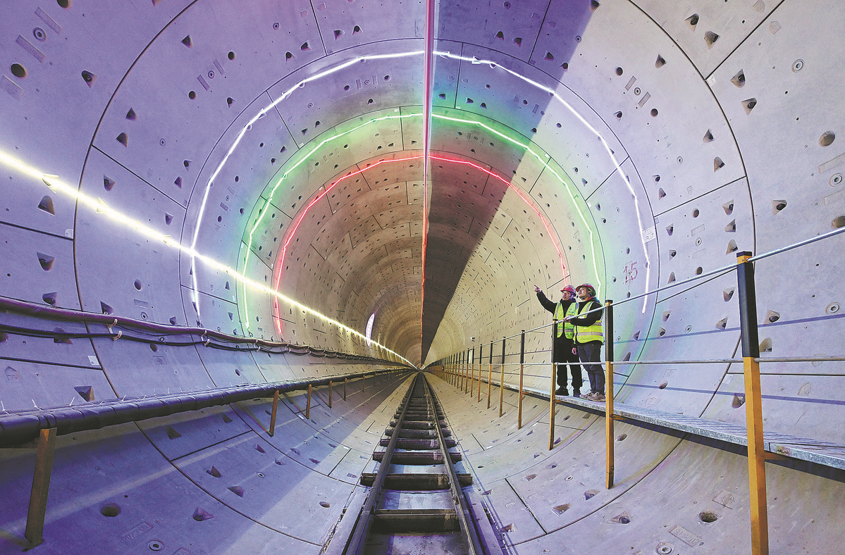 Workers inspect a tunnel that is part of Line 22 of Beijing's urban railway transit network, which passes through Langfang, Hebei province, last month. The line will link the capital's Pinggu district to its downtown area via Yanjiao, an area under the administration of Langfang but located just across the Chaobai River from Beijing. WANG XIAO/XINHUA