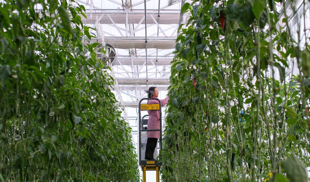 A staff member works at an agriculture science and technology exhibition hall in Changji, Northwest China's Xinjiang Uygur autonomous region, Dec 19, 2023. [Photo/Xinhua]