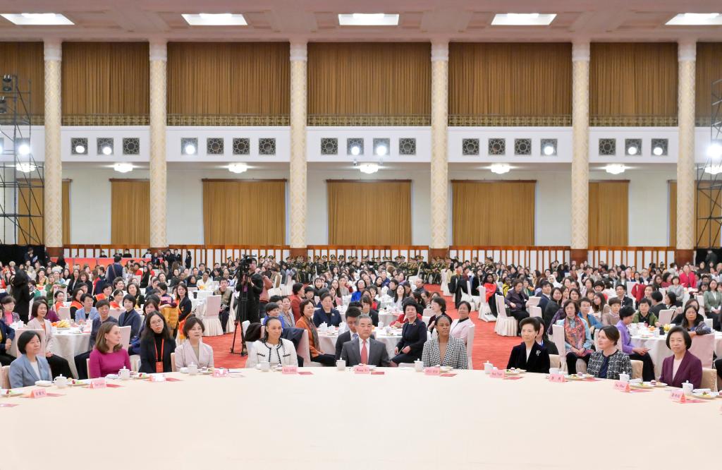 The event was attended by over 1,000 guests, including officials from relevant central Party and government departments, female lawmakers and political advisors at the country's ongoing "Two Sessions," female representatives from various sectors and ethnic groups, as well as from Hong Kong and Macao, diplomatic envoys, international organization representatives and foreign female experts.