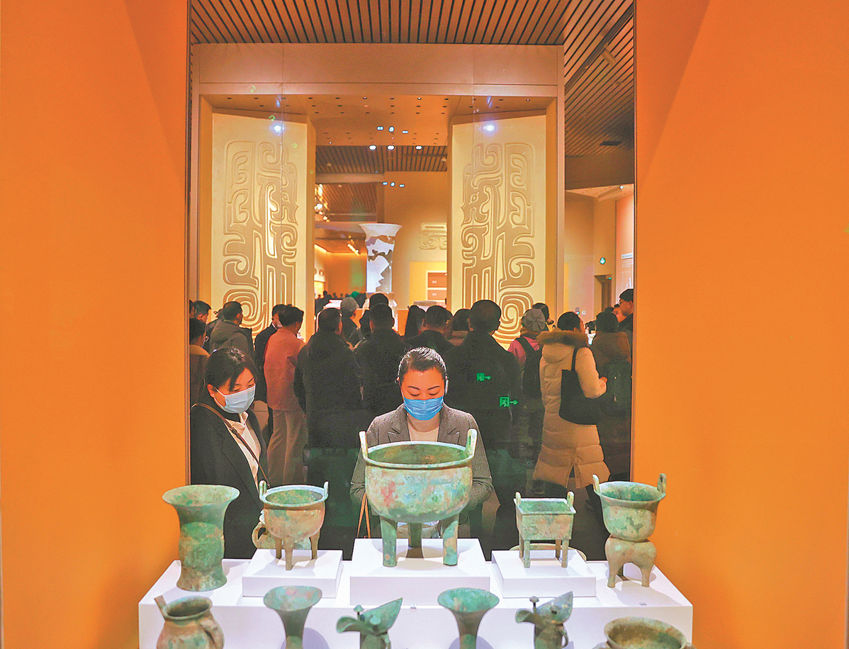 Visitors tour an exhibition hall of bronzeware at the Yinxu Museum in Anyang, Henan province, last month, as the museum officially opens. JIANG DONG/CHINA DAILY