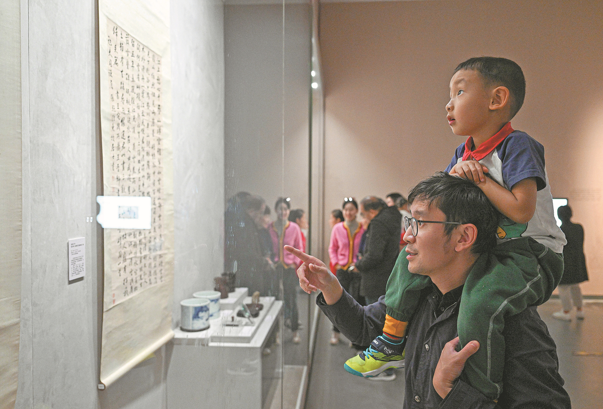 A calligraphy scroll attracts the attention of visitors during an exhibition for poet and calligrapher Su Shi (1037-1101) in the Hainan Museum in Haikou, Hainan province, last month. PU XIAOXU/XINHUA