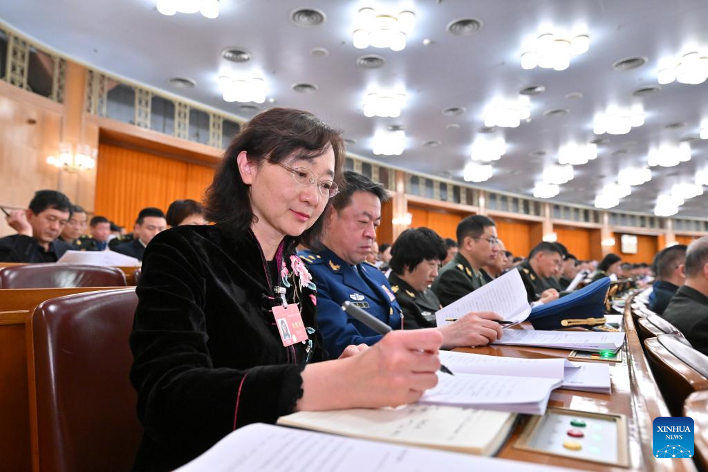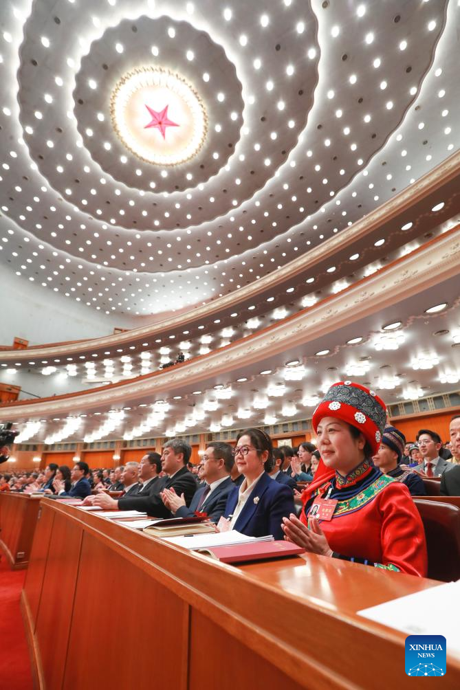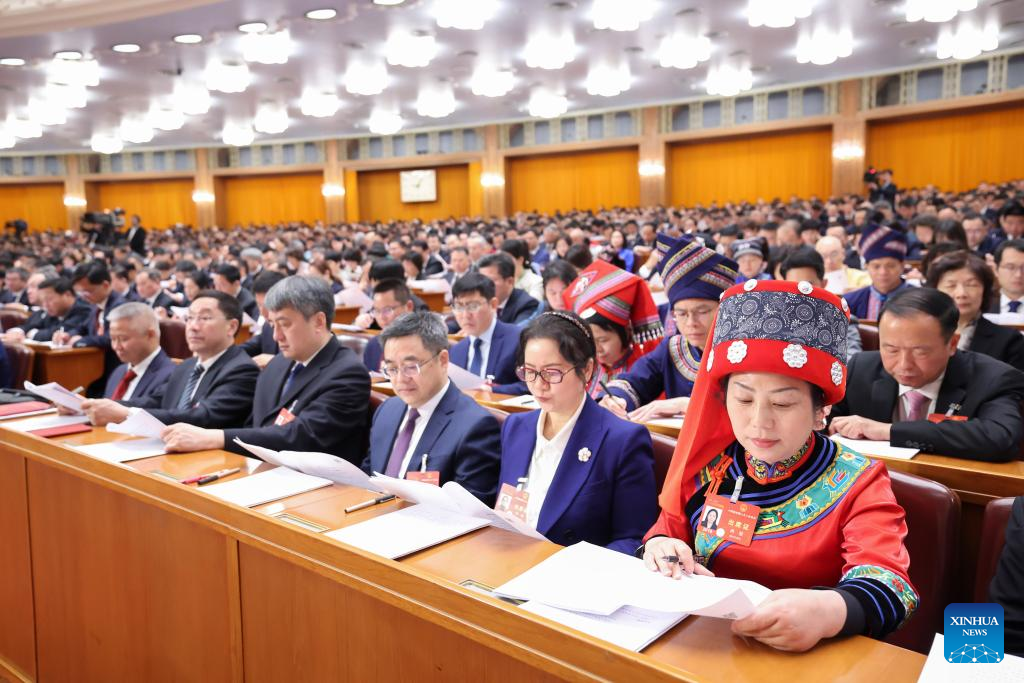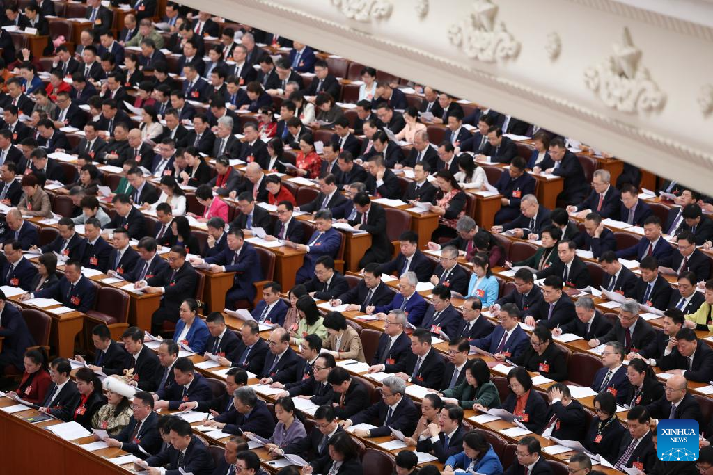 Deputies to the 14th National People's Congress (NPC) attend the second plenary meeting of the second session of the 14th NPC at the Great Hall of the People in Beijing, capital of China, March 8, 2024. (Xinhua/Liu Weibing)