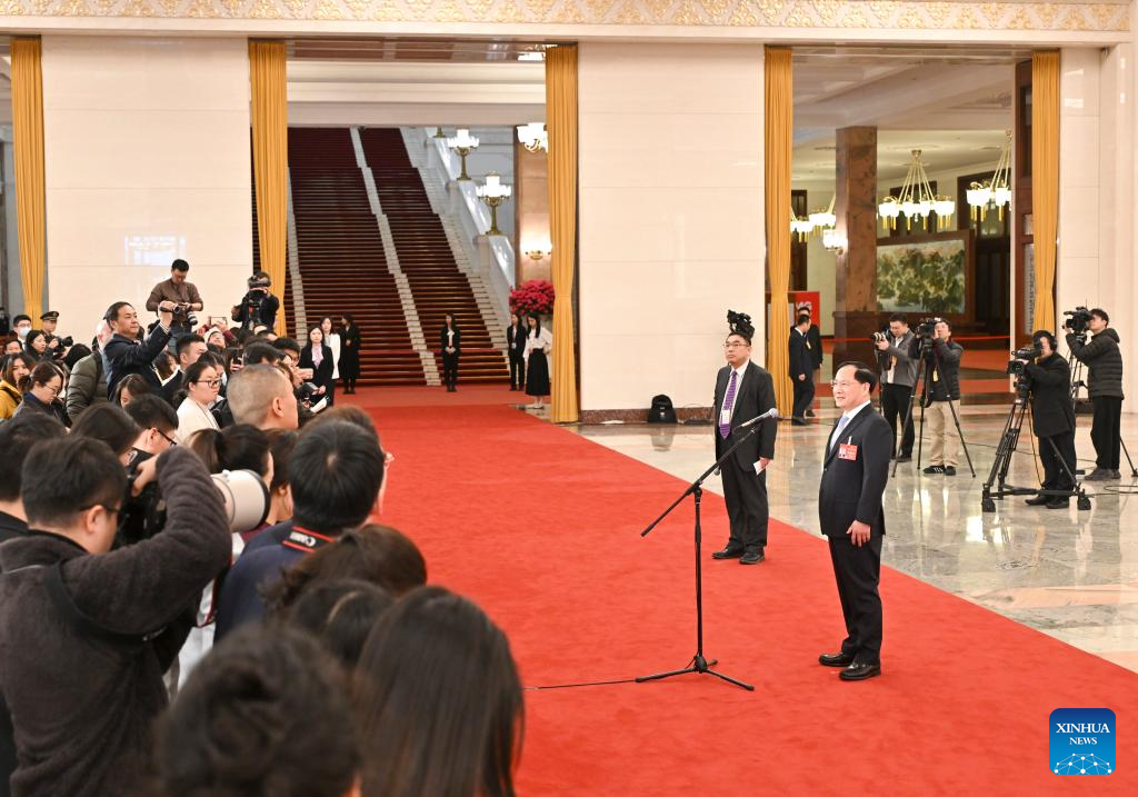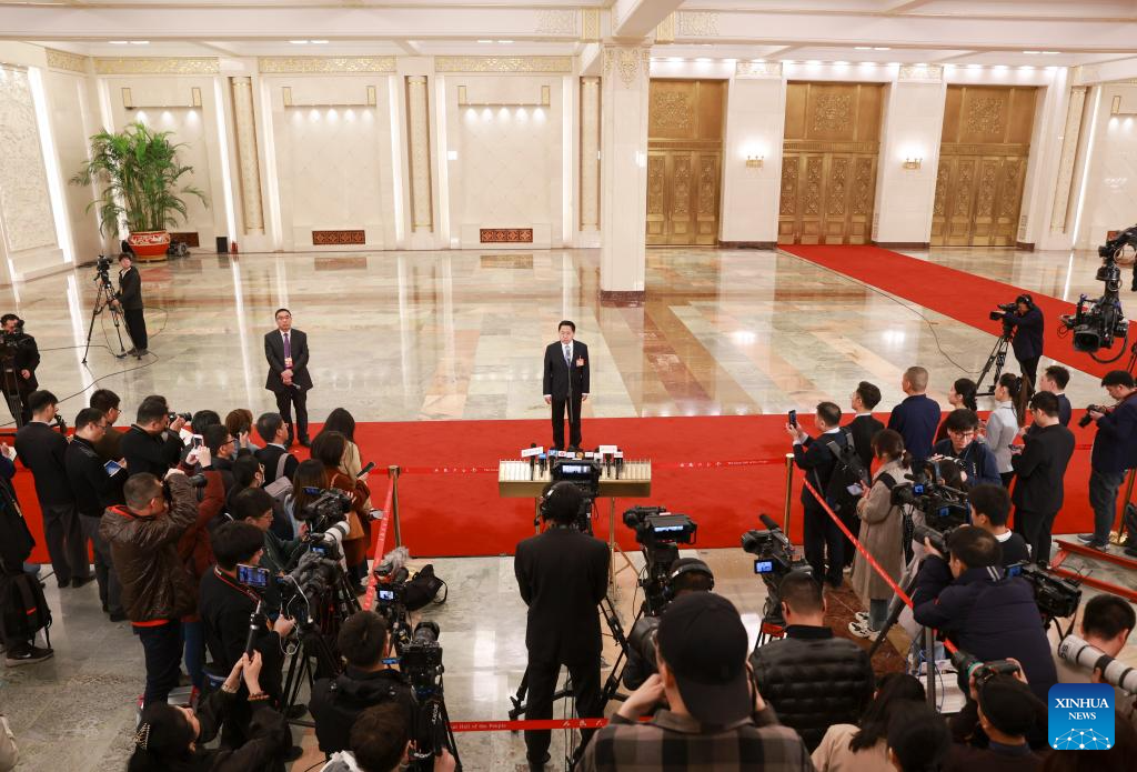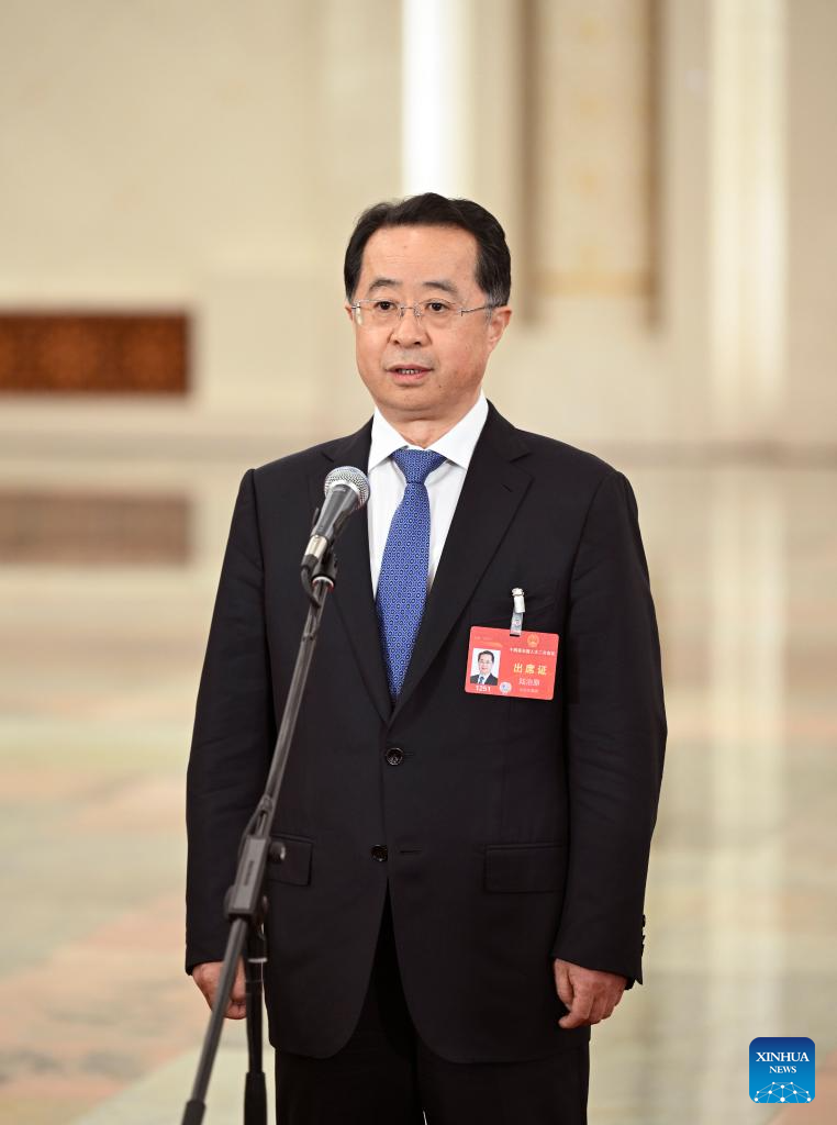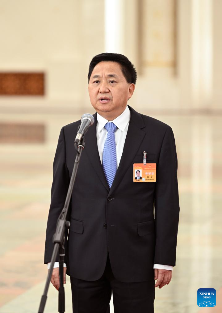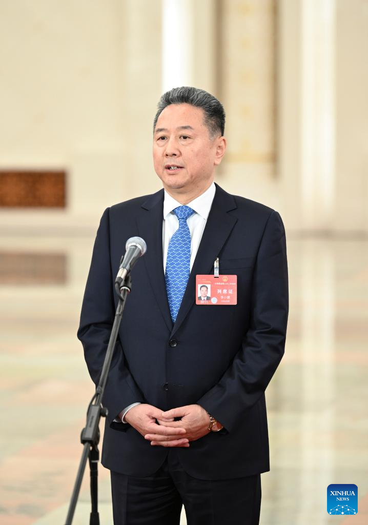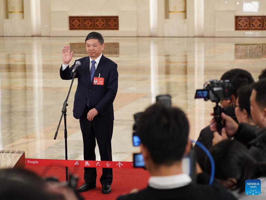 Head of the State Administration for Market Regulation Luo Wen gives an interview after the second plenary meeting of the second session of the 14th National People's Congress (NPC) at the Great Hall of the People in Beijing, capital of China, March 8, 2024. (Xinhua/Mu Yu)