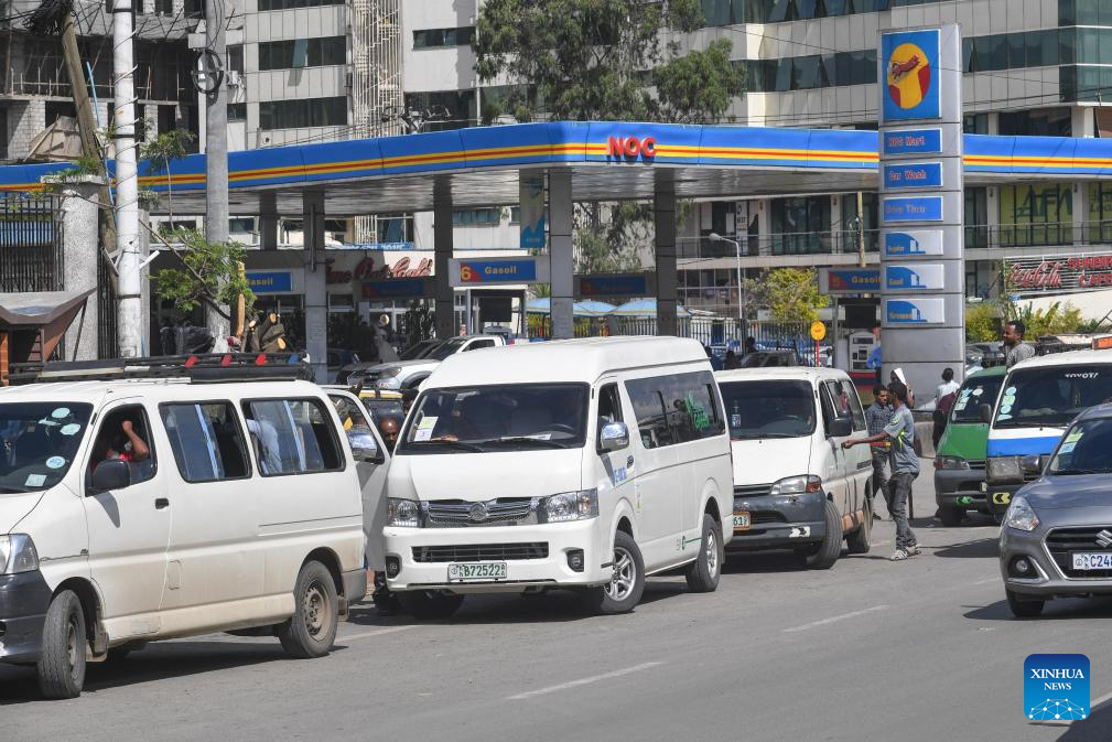 ADDIS ABABA, March 8 (Xinhua) -- On a typical sunny day in Addis Ababa, the capital of Ethiopia, Adugna Adamu was offering a taxi service from the Bole Airport area to Piazza, the city's atmospheric old town, with one of the electric minibuses that have recently begun plying the streets of the capital.