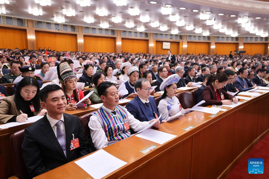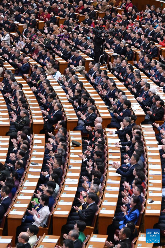 Members of the 14th National Committee of the Chinese People's Political Consultative Conference (CPPCC) attend the closing meeting of the second session of the 14th CPPCC National Committee at the Great Hall of the People in Beijing, capital of China, March 10, 2024. (Xinhua/Jin Liwang)