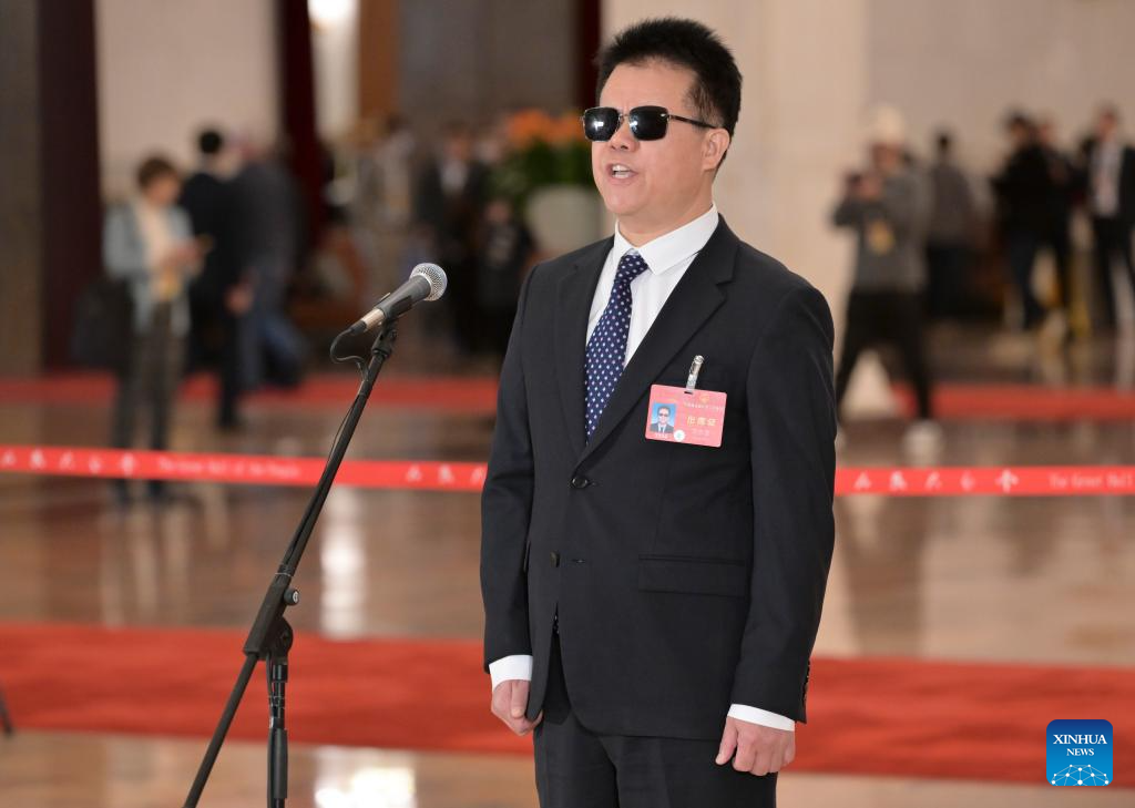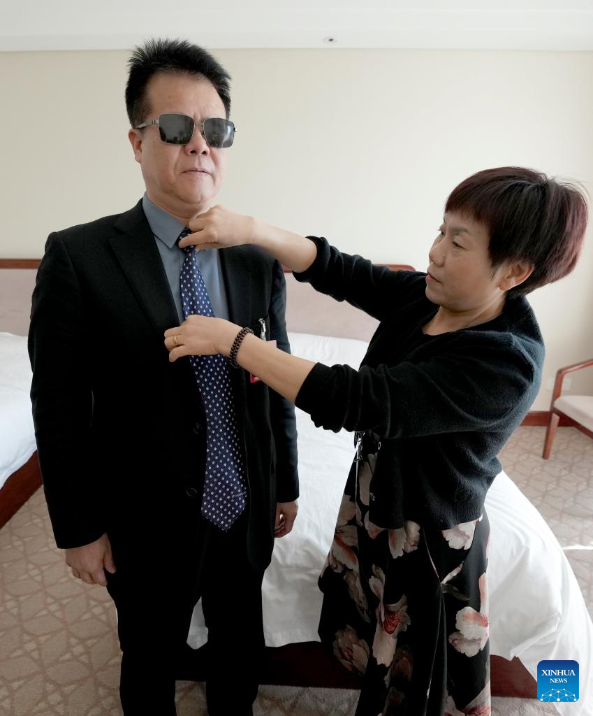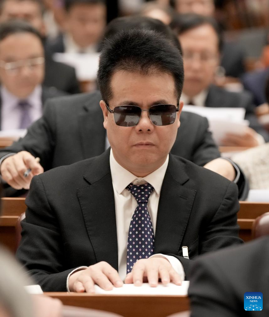 Among the nearly 3,000 deputies to the 14th NPC who commenced their five-year term in 2023, Wang stands out as the sole individual with visual impairment.