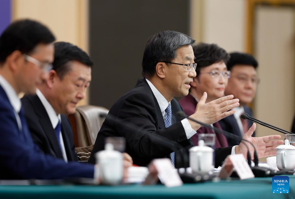 China's Minister of Housing and Urban-Rural Development Ni Hong speaks at a press conference on people's livelihood for the second session of the 14th National People's Congress (NPC) in Beijing, capital of China, March 9, 2024. China's Minister of Education Huai Jinpeng, Minister of Human Resources and Social Security Wang Xiaoping, and Chief of the National Disease Control and Prevention Administration Wang Hesheng also attended the press conference on Saturday. (Xinhua/Mu Yu)