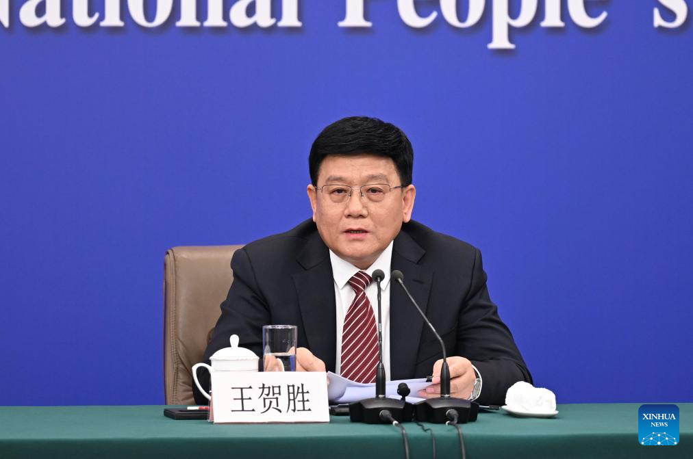 China's Chief of the National Disease Control and Prevention Administration Wang Hesheng speaks at a press conference on people's livelihood for the second session of the 14th National People's Congress (NPC) in Beijing, capital of China, March 9, 2024. China's Minister of Education Huai Jinpeng, Minister of Human Resources and Social Security Wang Xiaoping, and Minister of Housing and Urban-Rural Development Ni Hong also attended the press conference on Saturday. (Xinhua/Mu Yu)