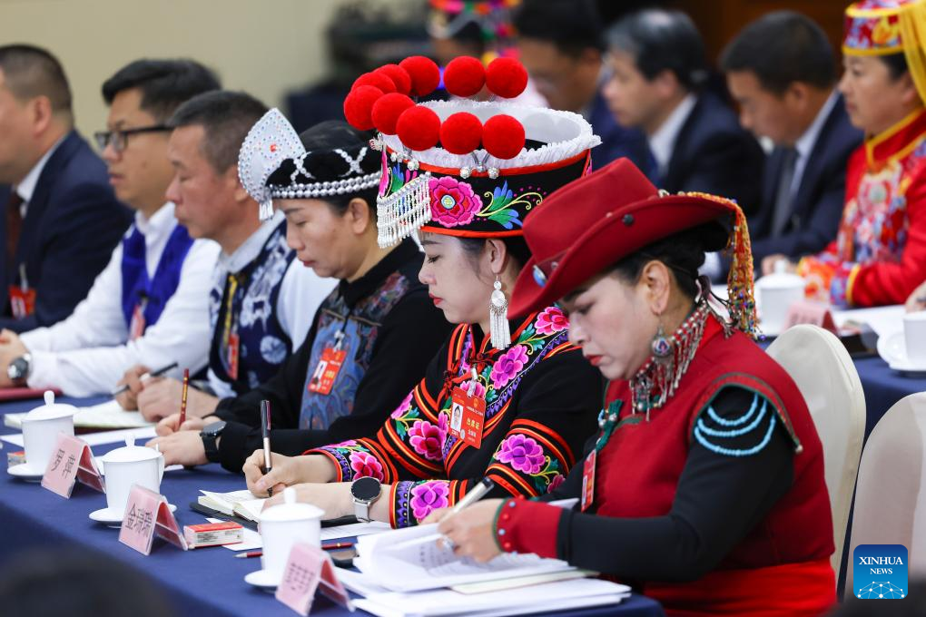 A group meeting of deputies from the delegation of Yunnan Province is held at the second session of the 14th National People's Congress (NPC) in Beijing, capital of China, March 10, 2024. (Xinhua/Cai Yang)