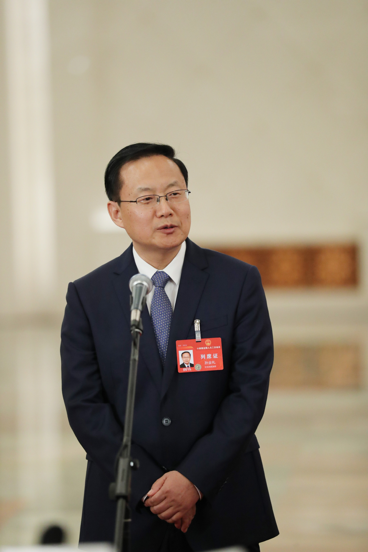 Sun Yeli, minister of culture and tourism, speaks at a minister's passage interview on March 11, 2024. [Photo by Kuang Linhua/China Daily]