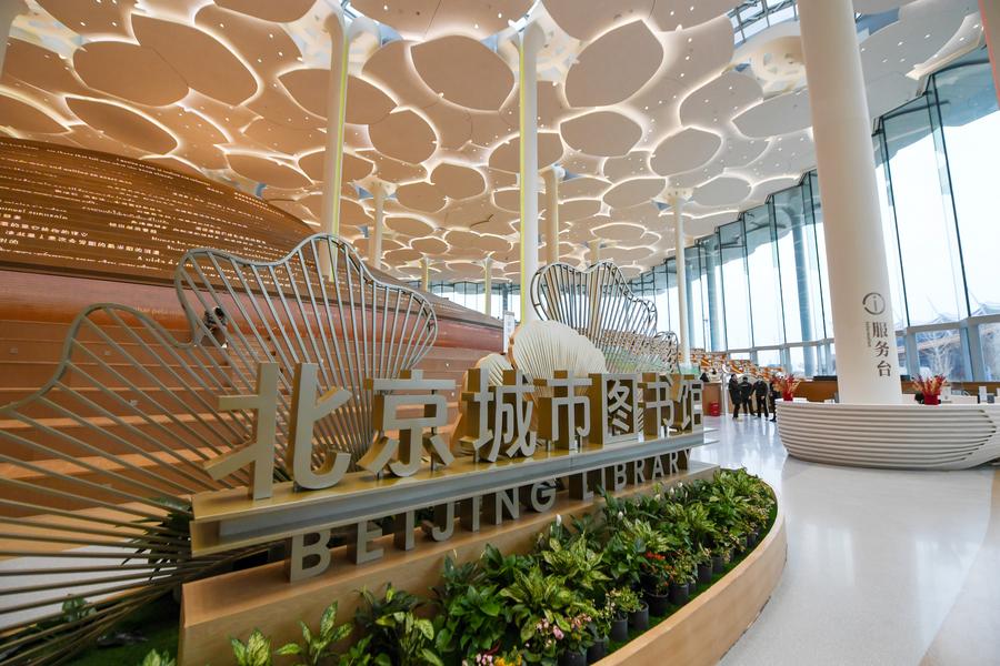 This photo taken on Feb. 28, 2024 shows an interior view of Beijing Library in Beijing, capital of China. (Xinhua/Ju Huanzong)