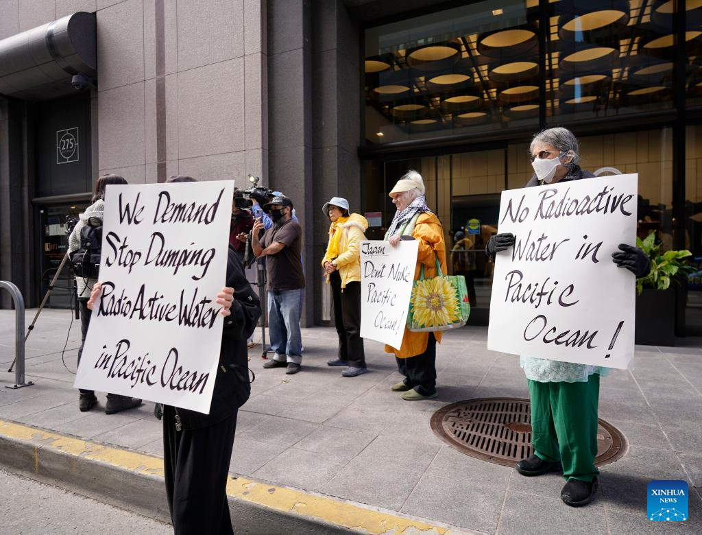 People take part in a rally against Japan's ocean discharge of Fukushima nuclear-contaminated wastewater in front of the Consulate General of Japan in San Francisco, California, the United States, March 11, 2024. (Photo by Li Jianguo/Xinhua)