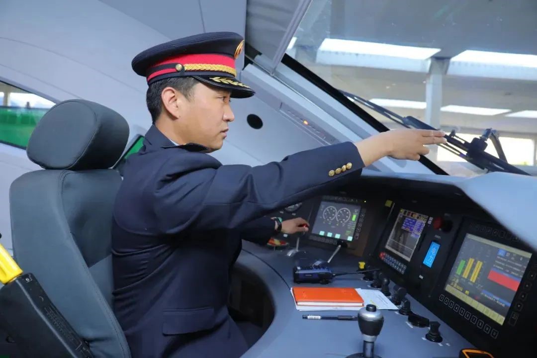 Sonam Wangdrak drives a train. (Photo from the official public account of Renmin Tiedao on WeChat)