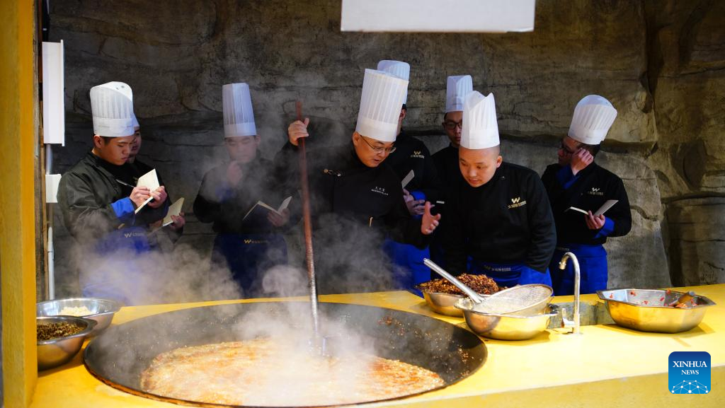 Apprentices learn to cook hotpot at a hotpot restaurant in Nan'an District, southwest China's Chongqing Municipality, March 9, 2024. (Xinhua)