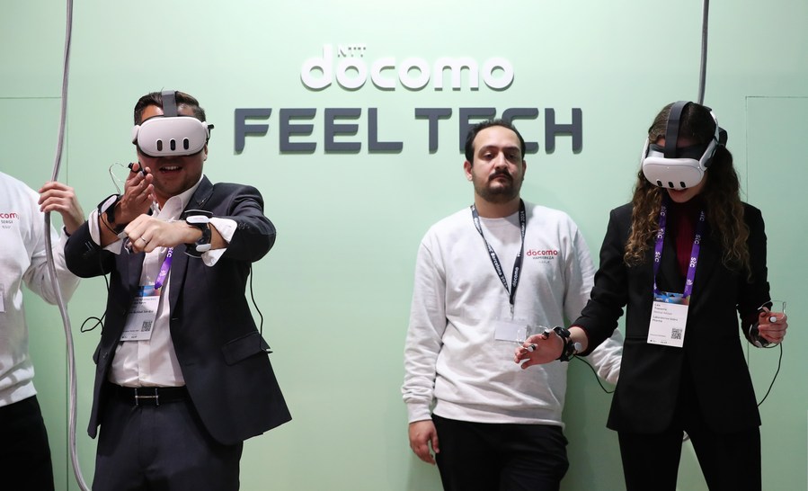 People visit the Mobile World Congress (MWC) 2024 in Barcelona, Spain, Feb. 28, 2024. (Xinhua/Gao Jing)