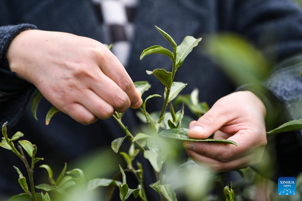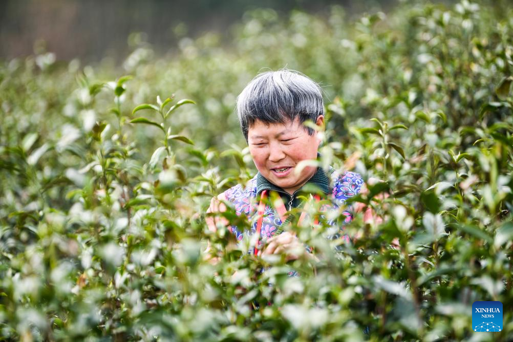 Tea farmers embrace spring harvest season in Fengjie County, SW China's Chongqing