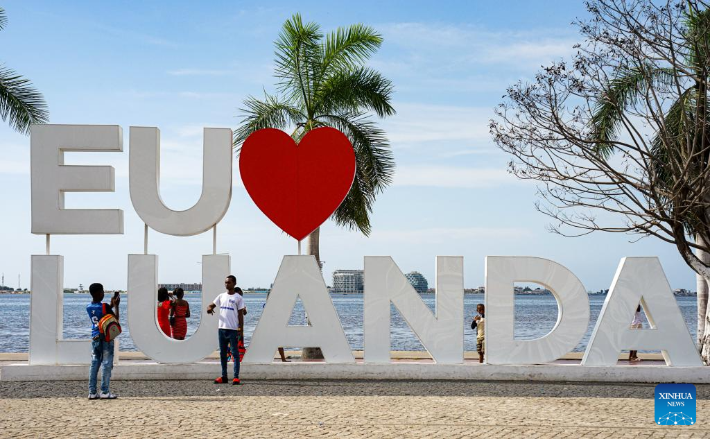 People take a walk along the coast in Luanda, capital of Angola, March 9, 2024. (Xinhua/Li Yahui)
