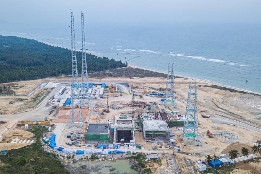 An aerial drone photo taken on March 6, 2024 shows the No. 2 launch pad of Hainan commercial spacecraft launch site under construction in Wenchang, south China's Hainan Province. (Xinhua/Pu Xiaoxu)