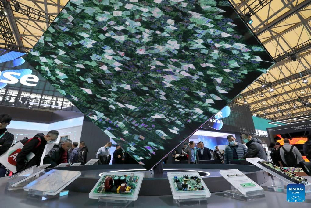 Visitors discuss about Laifen's electric toothbrushes during the 2024 Appliance & Electronics World Expo (AWE2024) in east China's Shanghai, March 14, 2024. With the theme of "Smartize the Future", the AWE2024 kicked off here on Thursday. The world's leading brands in the field of home appliances and consumer electronics gathered at the expo to showcase their latest innovations. (Xinhua/Fang Zhe)