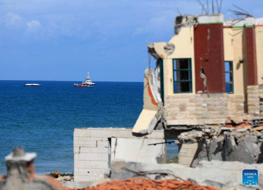 GAZA, March 15 (Xinhua) -- The first aid ship, traveling through the Cyprus-Gaza humanitarian maritime corridor, reached the coast of the Palestinian enclave on Friday and began offloading its cargo, Palestinian sources said.