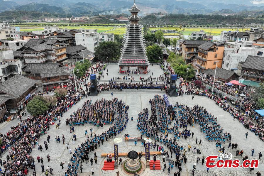 People of Dong ethnic group gather to worship their ancestor Sama during the Sama Festival in Sanbao Dong Village of Rongjiang County, Qiandongnan Miao and Dong Autonomous Prefecture, southwest China's Guizhou Province, March 18, 2024. (Photo: China News Service/Qu Honglun)