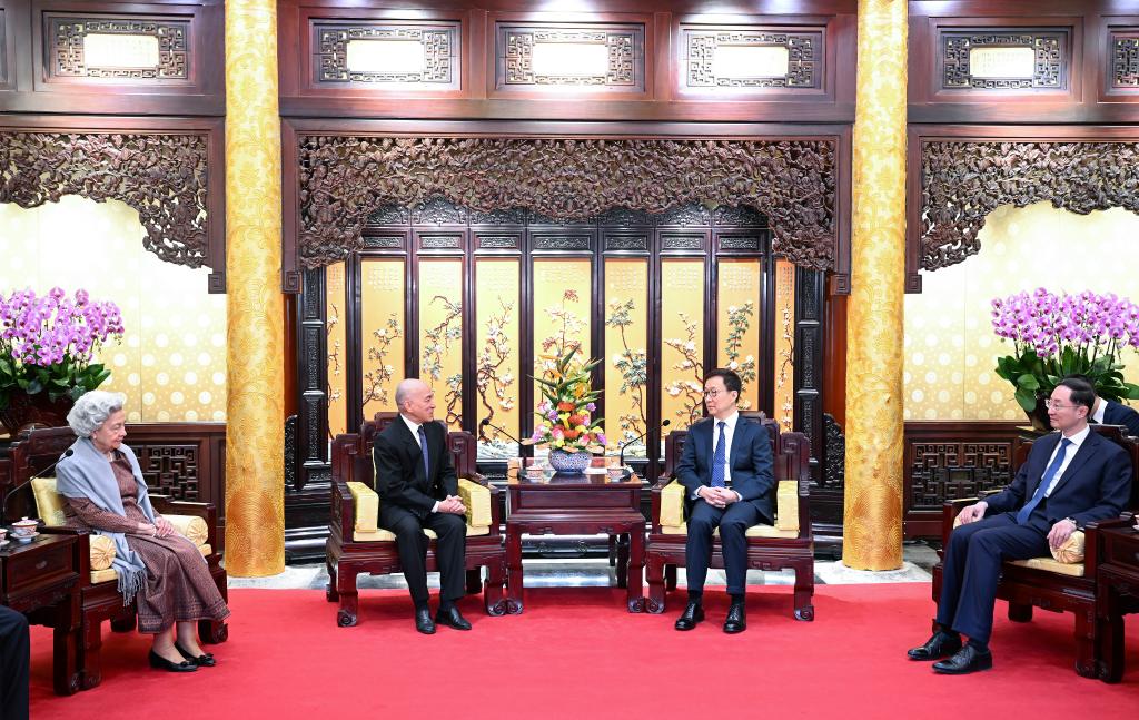 Chinese Vice President Han Zheng meets with Cambodian King Norodom Sihamoni and Queen Mother Norodom Monineath Sihanouk in Beijing, capital of China, March 21, 2024. (Xinhua/Zhang Ling)