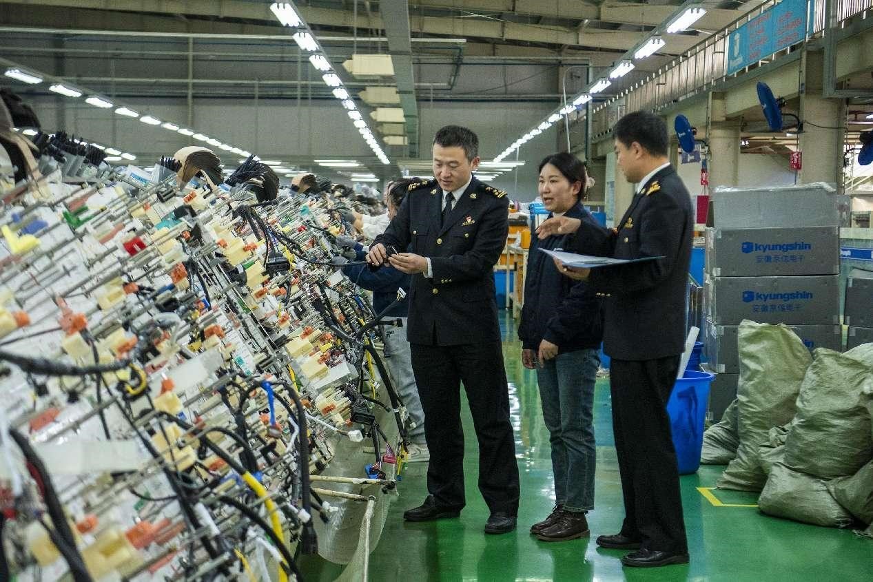 Customs officers of Huaibei, east China's Anhui province launch inspection in a workshop of a local company. (People's Daily Online/Xiao Benxiang)