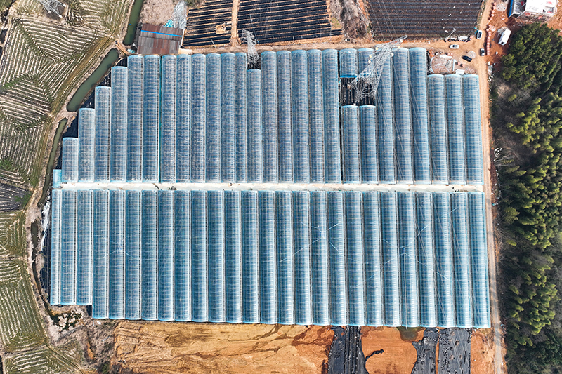 Photo shows an aerial view of a blueberry planting base in Shizi town, Langxi county, east China's Anhui Province. (Photo/Gao Yifan)