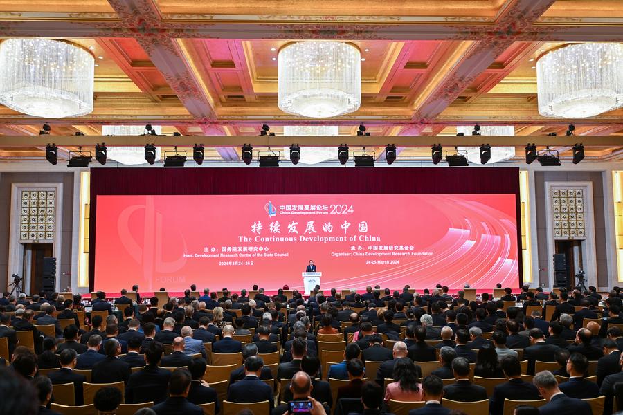 This photo taken on March 24, 2024 shows the opening ceremony of the China Development Forum 2024 in Beijing, capital of China. (Xinhua/Li Xin)