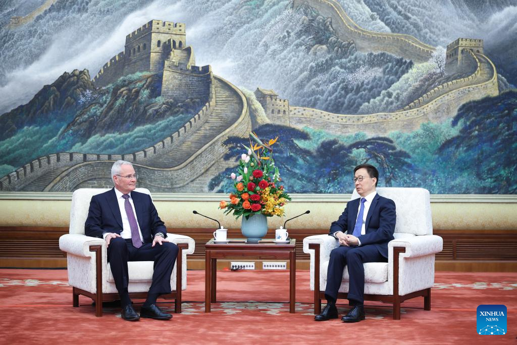 When meeting with Woods, Han called on the two sides to implement the important consensus reached by the two heads of state in San Francisco to promote the steady, healthy and mutually beneficial development of China-U.S. relations.