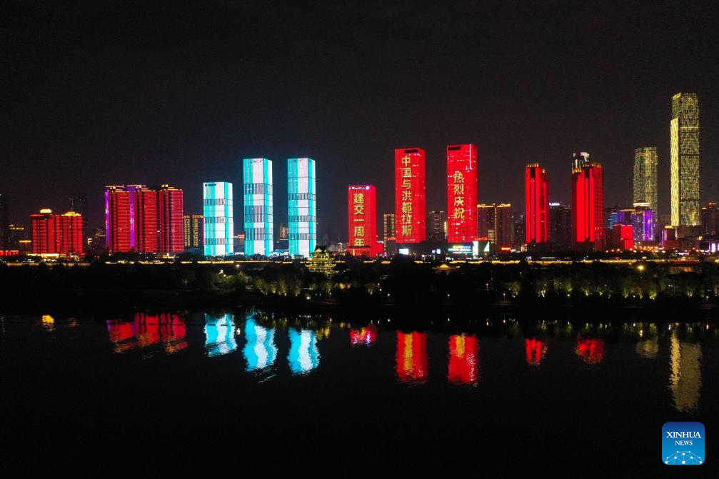 CHANGSHA, March 26 (Xinhua) -- Changsha, the capital of central China's Hunan Province, on Tuesday evening staged an elaborate light show to celebrate the first anniversary of the establishment of diplomatic relations between China and Honduras.
