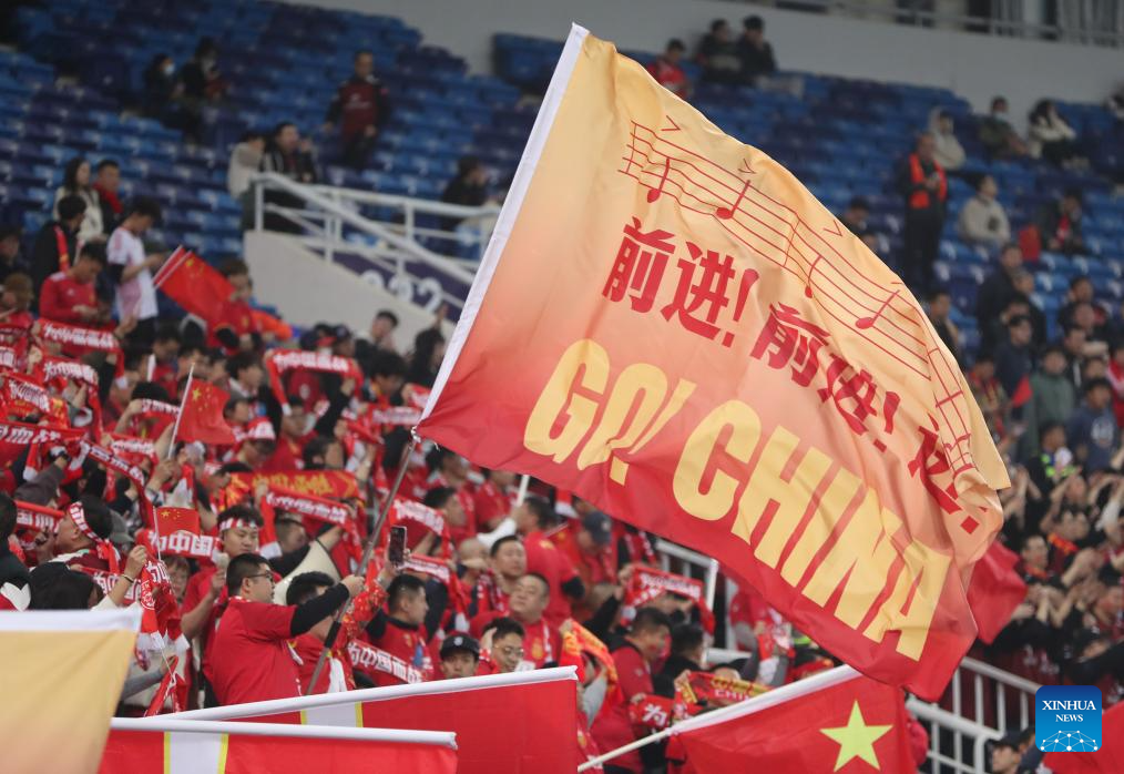Fans of China are seen before the group C match of 2026 FIFA World Cup Asian qualifiers between China and Singapore in north China's Tianjin Municipality on March 26, 2024. (Xinhua/Sun Fanyue)