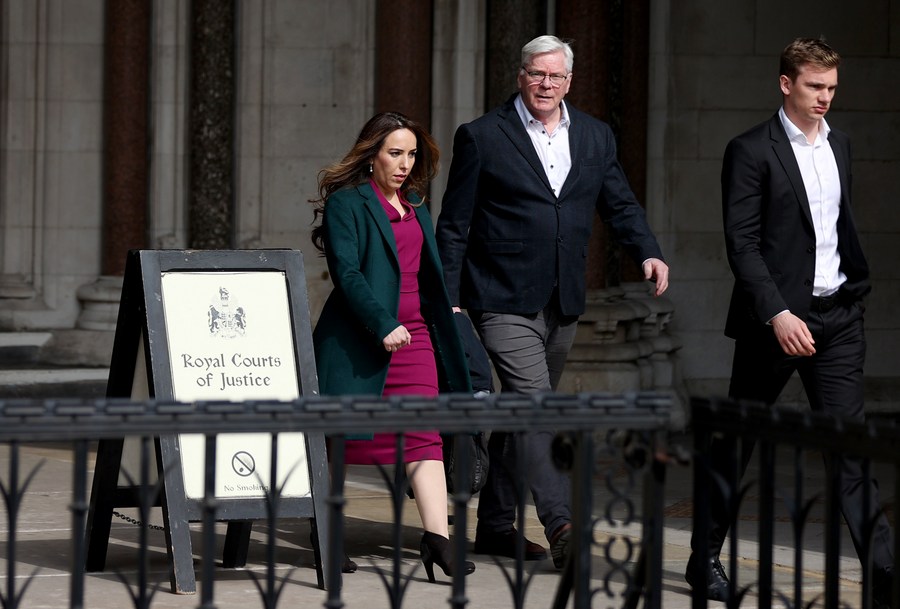 WikiLeaks founder Julian Assange's wife Stella Assange (L) walks out of the High Court in London, Britain, on March 26, 2024. (Xinhua/Li Ying)