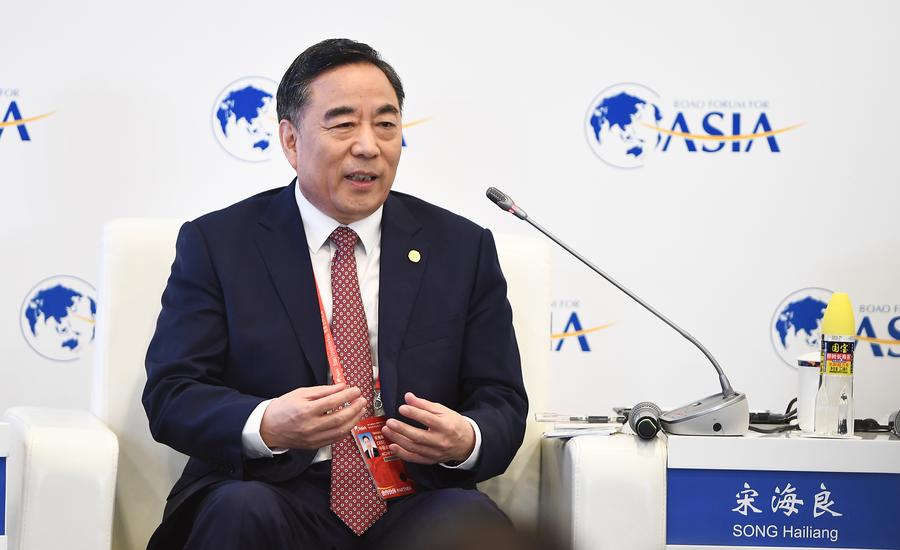 Song Hailiang, chairman of China Energy Engineering Group Co., Ltd., speaks at a panel discussion themed on "Innovation, Greenness, Digital Intelligence and Integration Led High-Quality Development" during the Boao Forum for Asia (BFA) Annual Conference 2024 in Boao, south China's Hainan Province, March 27, 2024. (Xinhua/Yang Guanyu)