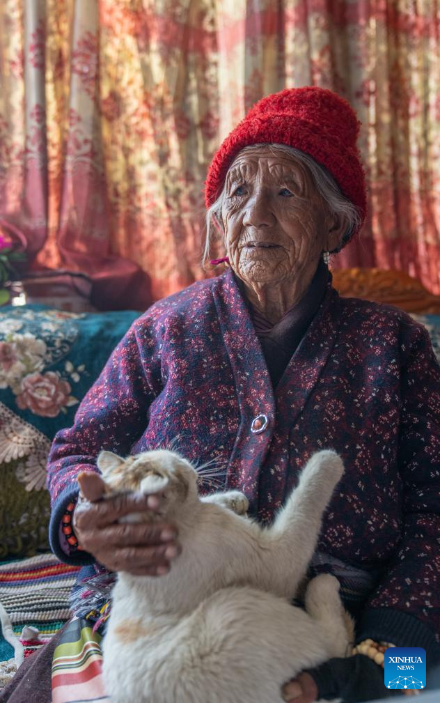 Kelsang Chodron is pictured at home in Changkhyim Village in Qonggyai County of Shannan, southwest China's Xizang Autonomous Region, March 16, 2024. (Xinhua/Tenzing Nima Qadhup)